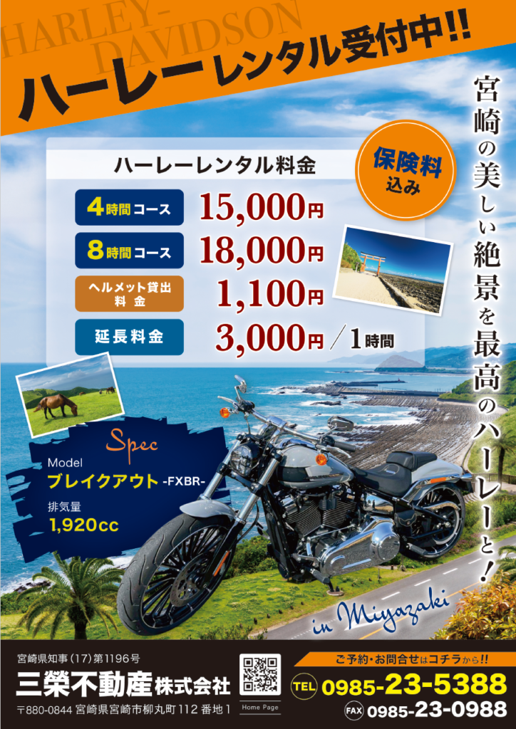 今年度より、グループ傘下の三榮不動産㈱は、ハーレーのレンタルバイク事業をスタートいたします。
